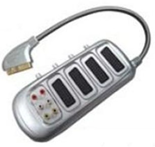 Item: Scart plug Packing: hang card Description: Scart plug to 4*scart jack, w/4*switch, W/6RCA jacks, Gold plated, net Length:35cm, OD:7MM, ROHS, Material: ABS+PVC
