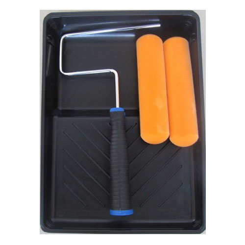 Item: Paint tray set Packing: Shrink with color label Description: 4pcs paint tray set, 2pcs rollers, 1pcs frame with double color handle, 1pcs 7' tray