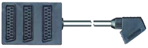 Item: Scart plug Packing: hang card Description: Scart plug to 3*scart jack,nickel plated, Net Length:35cm, OD:7MM, Mini type, ROHS, Material: ABS+PVC