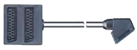 Item: Scart plug Packing: hang card Description: Scart plug to 2*scart jack, nickel plated, Net Length:35cm, OD:7MM,Mini type, ROHS, Material: ABS+PVC